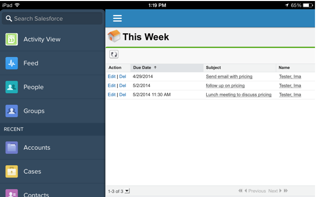 1. Salesforce 1. Salesforce 1 is the latest mobile app from Salesforce. I’ve been playing with it since it was released and really like it on my Android phone. It’s got Chatter, Cases, Opportunities and a consolidated “Today” calendar with a handy map/phone feature. For my iPad, I’m still partial to the browser solution but with a few enhancements I can see me using the app a lot more.